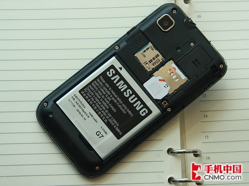 我们打开手机的后盖,可以发现,在靠近电话卡槽的地方设计有一个Micro SD卡槽,最高支持32GB的存储卡。因为三星I9000本来就内置了8GB或16GB的存储空间,而且还可以进行存储卡扩充,容量是完全不成问题的。