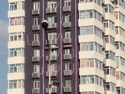 在远景拍照时,解析力是一个很重要的指标。我们选择了几个相对比较远的建筑物进行拍照,将样张放大到100%之后,可以看到小区楼房的窗户、楼顶“数码大厦”几个字的细节都有着较多的保留,即使是较远的一家酒店,顶部招牌的文字仍依稀可辨。