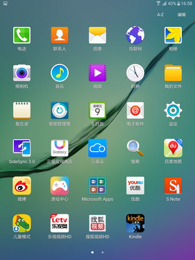 三星Galaxy Tab S2运行Android 5.0系统,在原有Magazine UX界面基础上大量精简,一扫三星系统臃肿的面貌,仅内置几个必要应用,Flipboard简报阅读功能也被剔除,整体感觉轻便简洁,操作十分流畅。