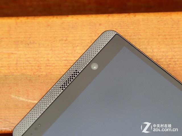 整体外观的工业设计是整个系列的风格体现,细节处的处理使得这款产品能够提升一个甚至是几个档次。在Slate 6的面板正上方和下方,颗粒状的横条中间隐藏了扬声器。上下两个分离式的扬声器设计十分合理,使得该机在立体声的营造上更利于横向的使用观看。
